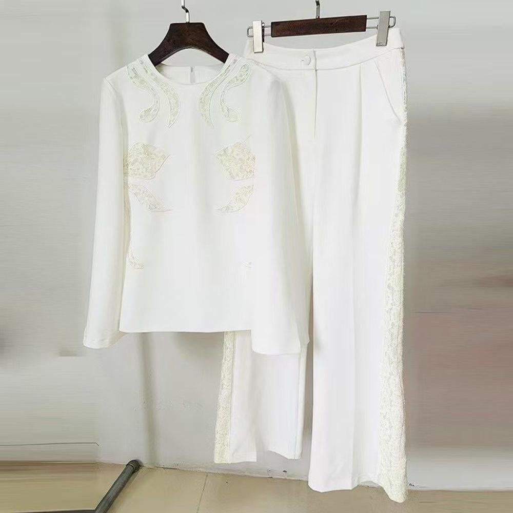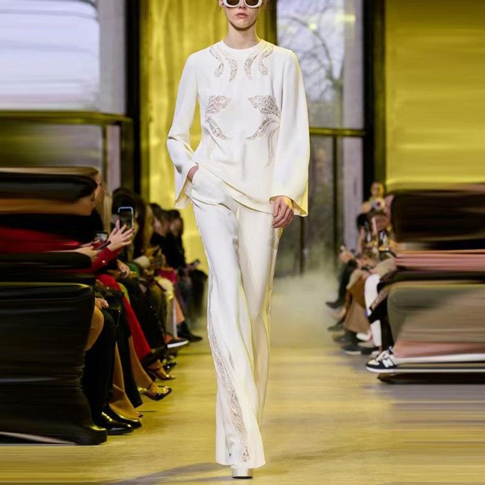 تألقي بإطلالة أنيقة ومميزة مع هذه البدلة البيضاء المصممة بجوانب من الجوبير والدانتيل، والتي تجمع بين الفخامة والعصرية. تتميز بتصميمها الراقي الذي يبرز القوام بشكل أنيق، مع تفاصيل الجوبير والدانتيل التي تضيف لمسة أنثوية ناعمة. اللون الأبيض يمنح البدلة طابعًا كلاسيكيًا يناسب مختلف المناسبات الرسمية والراقية.